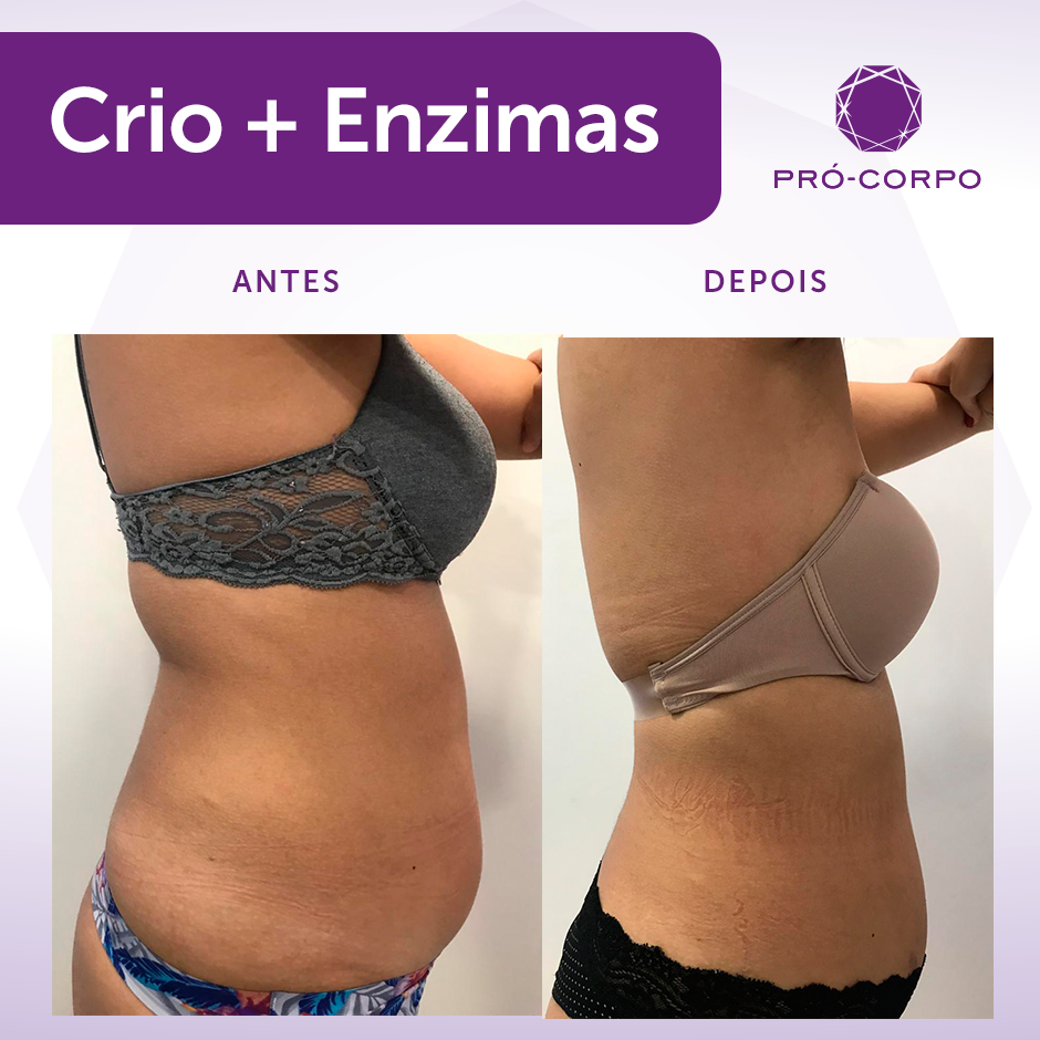 Criolipólise Tratamento estético para gordura localizada PróCorpo As combinações de enzimas transformam as células de gordura em micropartículas, facilitando a eliminação pelo organismo, seja por suor ou urina. À medida que vão sendo quebradas, as moléculas de gordura vão aos poucos sendo liberadas na corrente sanguínea para serem usadas como combustível.