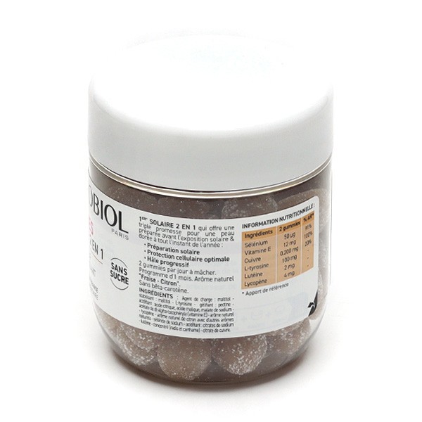 Oenobiol Gummies Solaire 2 en 1 Préparateur & Autobronzant 60 gummies Pharmacie en ligne OENOBIOL GUMMIES 2 en 1 - Préparateur Solaire- Autobronzant - Programme 1 mois - 60 Gummies - Arômes naturels fraise, citron - Complément Alimentaire - Sans Sucre - Vegan - Made in France. Oenobiol - Autobronzant - Hale Intense & Uniforme sans Soleil - Formule Renforcee - Complement Alimentaire Aux Extraits Naturels - Lot de 2x30 capsules.